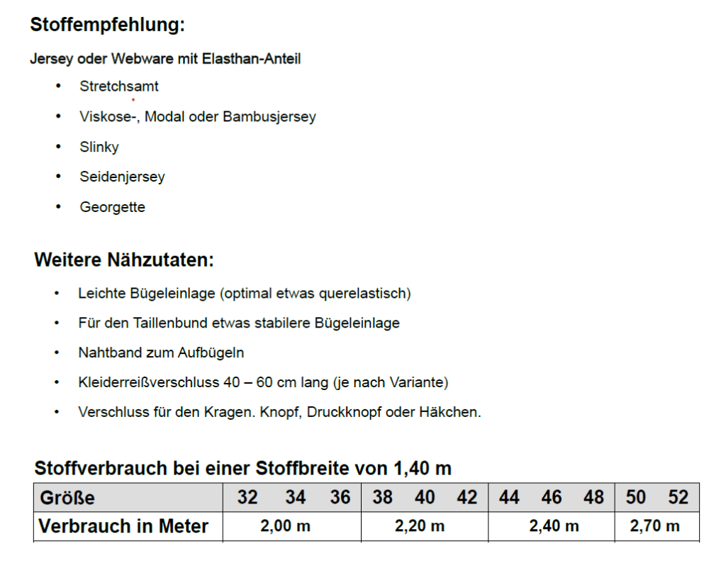 Stoffempfehlung und -verbrauch Maries Jumper inkl. Hose